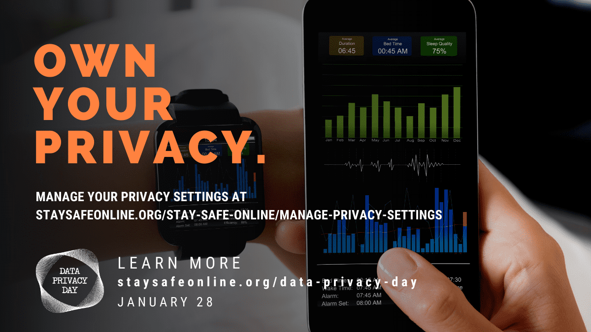This year, the National Cyber Security Alliance (NCSA) is encouraging individuals to “Own Your Privacy” by learning more about how to protect your valuable data online, and encouraging businesses to “Respect Privacy”, which advocates for holding organizations responsible for keeping individuals’ personal information safe from unauthorized access and ensuring fair, relevant and legitimate data collection and processing.