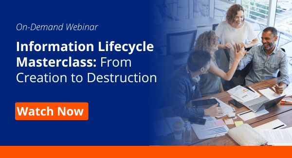 Learn how to standardize your information lifecycle management process in from our webinar, Information Lifecycle Masterclass: From Creation to Destruction. Using real-world examples, we’ll demonstrate how strategic improvements can enhance efficiency, reduce risk, and ensure compliance.